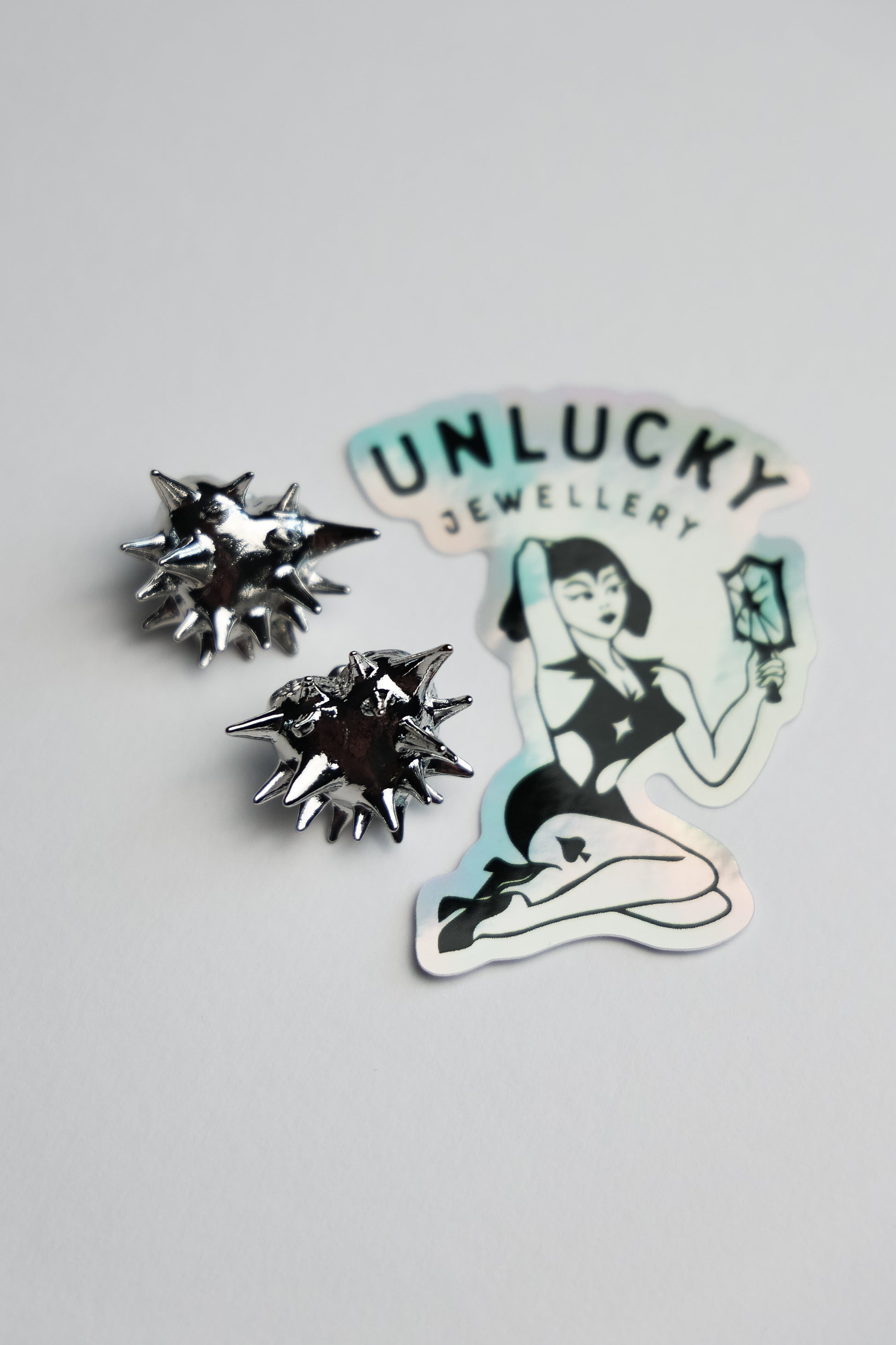 These hearts are cast within unforgiving spikes, finished with secure stud backs for everyday wear.